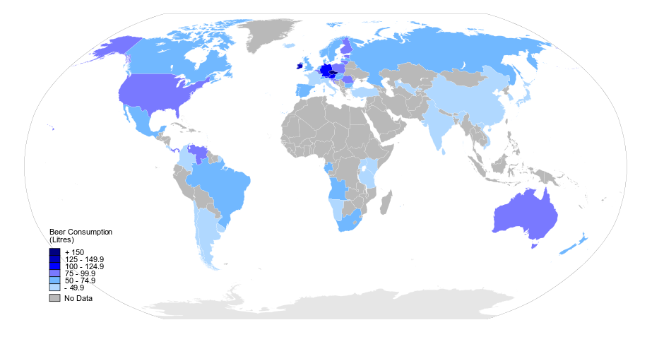 Worldwide beer consumption 2009