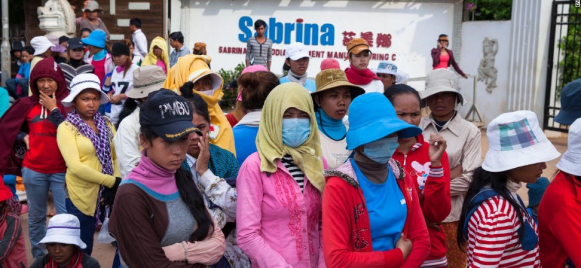Garment workers in Cambodia on strike. Source: CNN